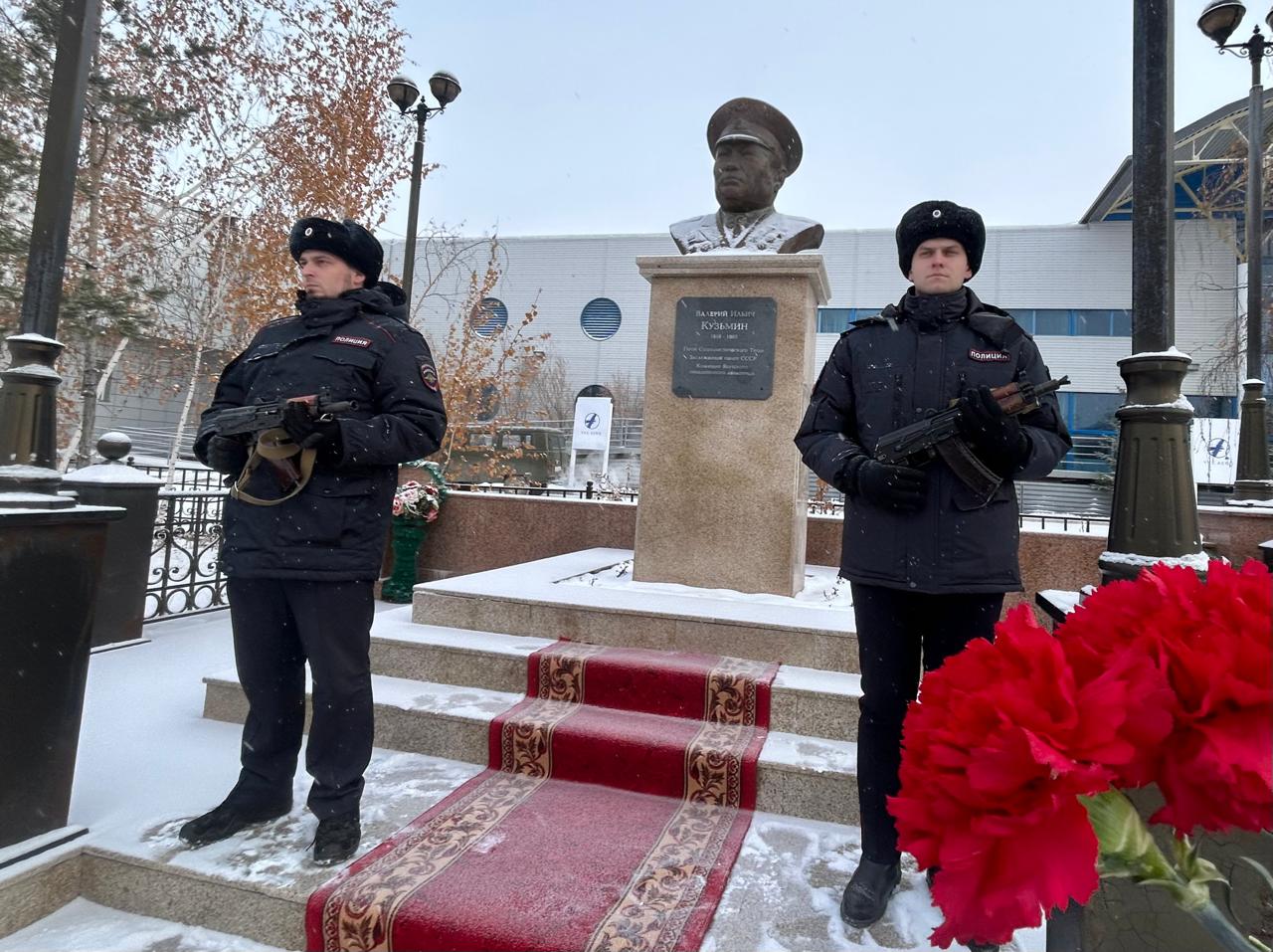 Торжественная церемония возложения цветов к памятнику Героя Социалистического Труда, заслуженного пилота СССР В.И. Кузьмина