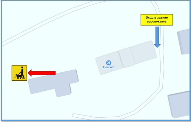 5) площадка для выгула собак-проводников (расположена на привокзальной площади, с установленным соответствующим указателем).